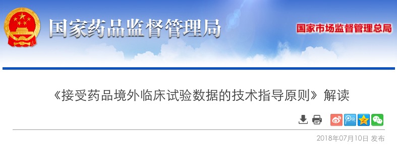 为进一步落实《关于深化审评审批制度改革鼓励药品医疗器械创新的意见》(厅字〔2017〕42号),发布《接受药品境外临床试验数据的技术指导原则》(以下简称《指导原则》)。